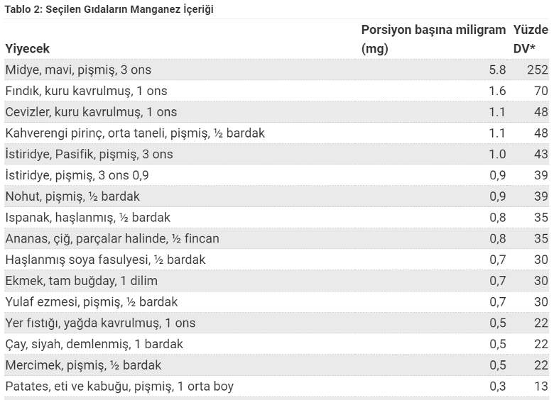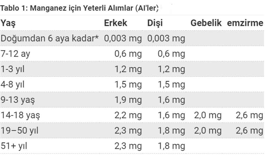 Manganez İçin Günlük Önerilen Alım Miktarı
