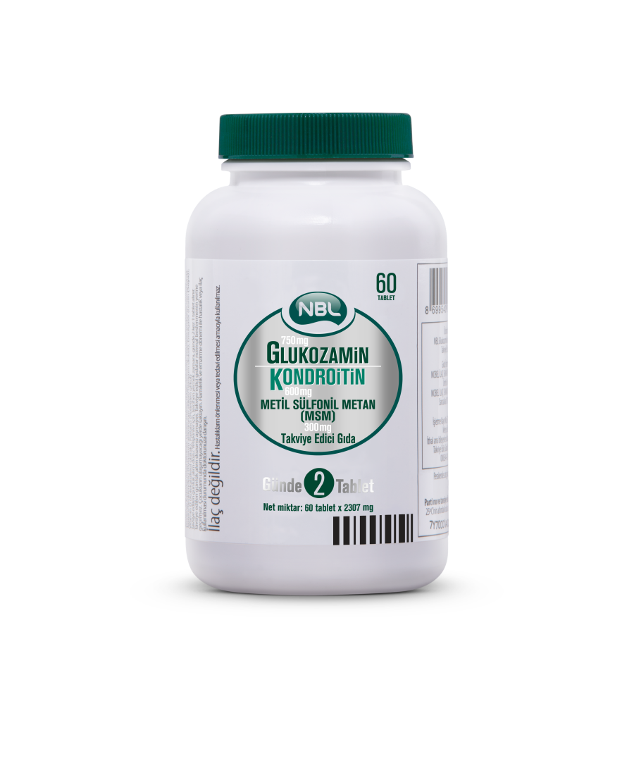 İçeriği: 1500 Glukozamin mg HCL , 1200 mg Kondroitin Sülfat, 600 mg Metil Sülfonil Metan (İki tabletteki toplam miktarıdır)