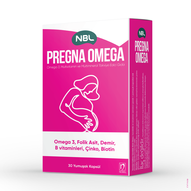 - NBL Pregna Omega en az 200 mg DHA içeriği ile anne tarafından her gün alındığında fetusun ve emzirilen bebeklerin normal beyin gelişimine katkıda bulunur.
